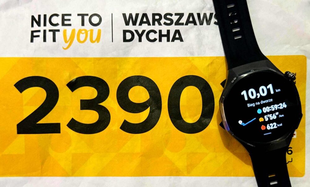 Najlepszy sprawdzian zegarka wypadł podczas Warszawskiej Dychy (bieg towarzyszący Maratonowi Warszawskiemu). Miałem cel: przebiec 10 km w mniej niż godzinę. Udało się – zegarek zmierzył 10,01 km w 59:24, czyli średnie tempo 5:56/km.