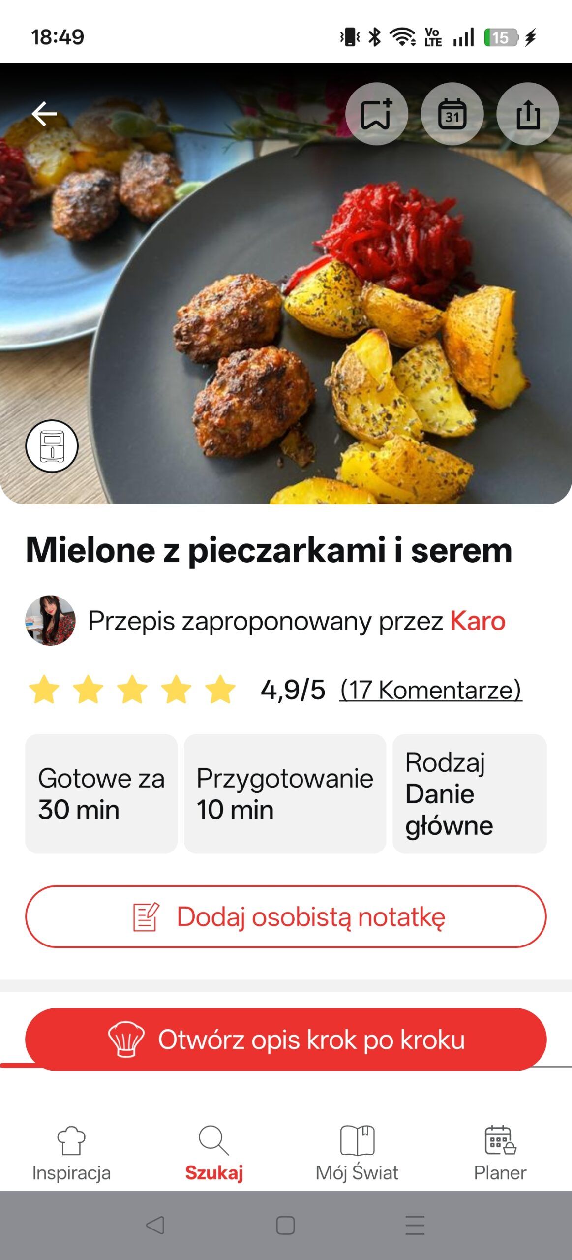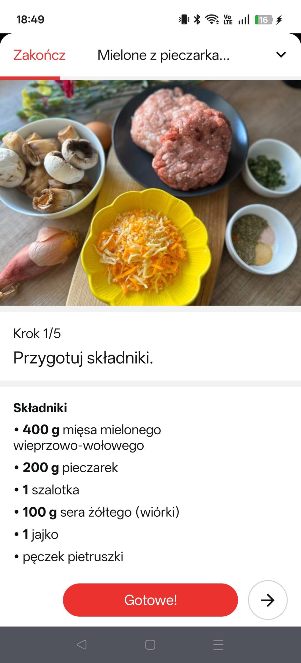 Same przepisy są napisane w prosty, przystępny sposób — krok po kroku, bez zbędnego komplikowania. Do tego często masz podpowiedzi, z jakiego programu skorzystać, więc znowu: mniej myślenia, więcej robienia. Na plus wypada też opcja generowania listy zakupów. Wybierasz przepis i aplikacja automatycznie tworzy listę składników — niby drobiazg, ale w codziennym życiu naprawdę ułatwia ogarnięcie zakupów i planowania posiłków. Do tego dochodzą informacje o wartościach odżywczych, więc jeśli ktoś liczy kalorie albo pilnuje makro, to ma wszystko pod ręką bez korzystania z dodatkowych aplikacji.