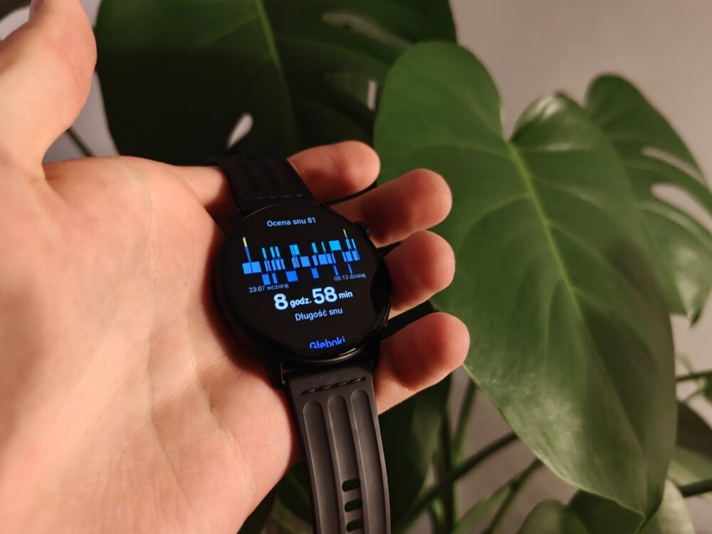 Oczywiście wszystkie pomiary można również wykonywać indywidualnie. Zegarek oferuje szczegółową analizę snu z rozbiciem na długość poszczególnych faz, monitoruje saturację krwi, mierzy tętno zarówno w spoczynku, jak i podczas aktywności, a co ciekawe — potrafi także pokazać wysokość nad poziomem morza oraz aktualne ciśnienie atmosferyczne. To zestaw funkcji, który w zupełności wystarcza do codziennego monitorowania podstawowych parametrów zdrowotnych.