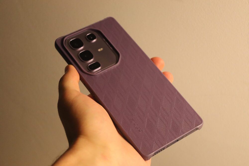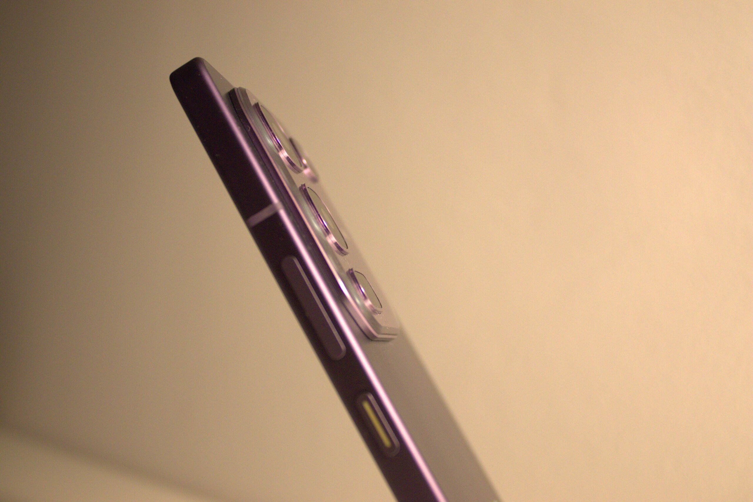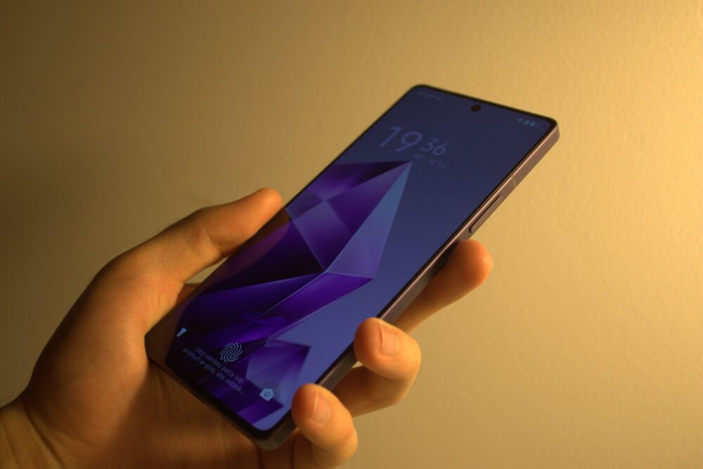 Przyciski też wypadają bardzo dobrze: osadzone stabilnie, z takim „kliknięciem”, które daje dokładnie tyle satysfakcji, ile powinno. Z przodu dominuje ogromny, 6,78-calowy panel z naprawdę wąskimi ramkami. Otwór na kamerkę jest niewielki i zupełnie nie rozprasza, a szkło delikatnie łapie światło na krawędziach, dając subtelny efekt głębi. Czytnik linii papilarnych pod ekranem dopełnia wrażenia porządku — front jest czysty, gładki, poukładany.