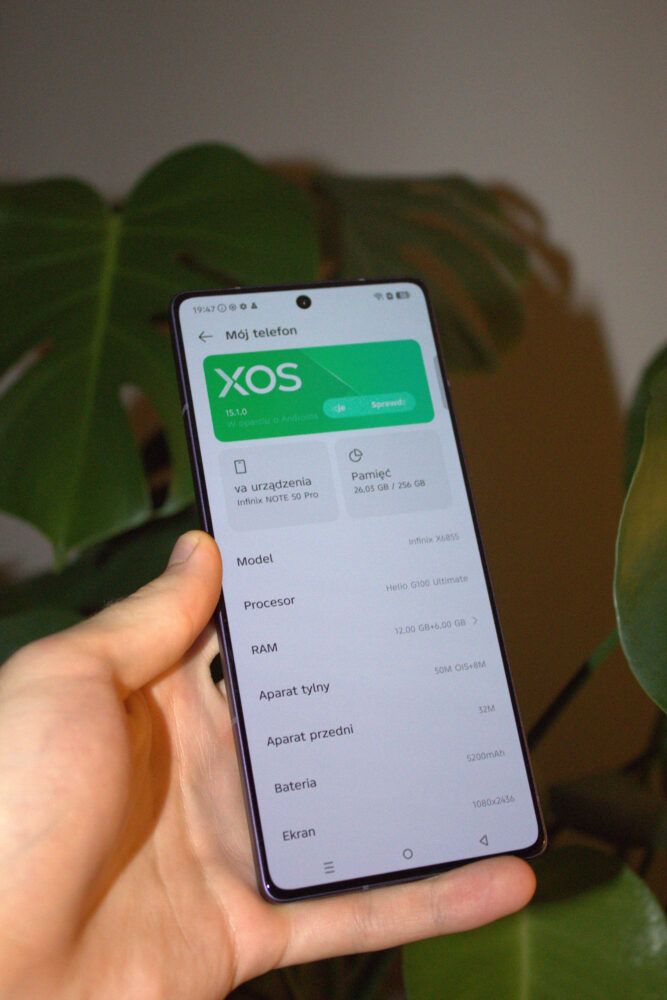 Infinix Note 50 Pro to telefon, który zaskoczył mnie na wielu płaszczyznach. Ekran AMOLED o przekątnej 6,78 cala i odświeżaniu 120 Hz sprawia, że wszystko wygląda płynnie i przyjemnie, a bateria 5200 mAh z ładowaniem przewodowym 90 W i bezprzewodowym 30 W pozwala korzystać z niego bez stresu o poziom energii. Helio G100 w połączeniu z 12+12 GB RAM nie ma problemu z wielozadaniowością, a Android 15 z XOS 15 działa lekko i przewidywalnie, co w codziennym użytkowaniu jest na wagę złota.