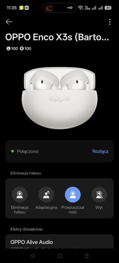 Warto przy tym wspomnieć, że OPPO Enco X3s obsługują również dźwięk w standardzie Hi-Res Audio Wireless, co w praktyce oznacza możliwość przesyłania muzyki w wyższej jakości niż w przypadku podstawowych kodeków Bluetooth. Słuchawki wspierają także bardziej zaawansowane rozwiązania kompresji dźwięku, dzięki czemu przy odpowiednim źródle muzyki można liczyć na większą szczegółowość nagrań i lepsze odwzorowanie detali. Oczywiście różnica będzie najbardziej zauważalna w przypadku plików o wyższej jakości lub podczas korzystania z serwisów streamingowych oferujących dźwięk w jakości bezstratnej, jednak dobrze widzieć, że producent nie zapomniał o użytkownikach zwracających uwagę na takie elementy.